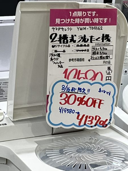 【売り切れました】2槽式チャンス☆ 2階建てリユースショップ スマイルサンタ伊那店 2槽式洗濯機☆2台限定30%OFF☆☆16日まで☆☆☆ 今、話したい誰かがいる