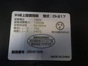 新生活応援 コンパクトIHクッカー DI-217 買取しました!! リユースショップ スマイルサンタ千曲戸倉店