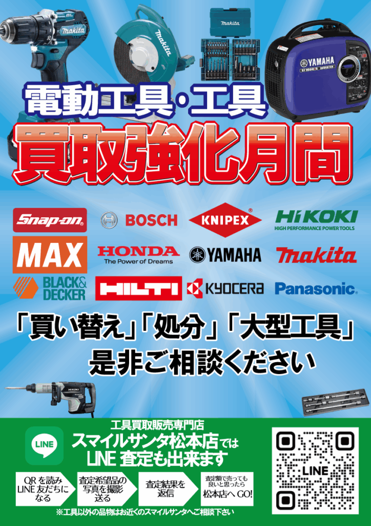 工具買取販売専門店のスマイルサンタ松本店だけでなく
