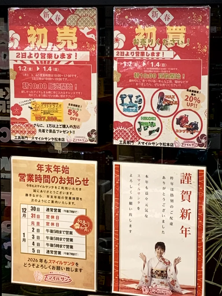 新年あけましておめでとうございます。工具専門店 スマイルサンタ松本店